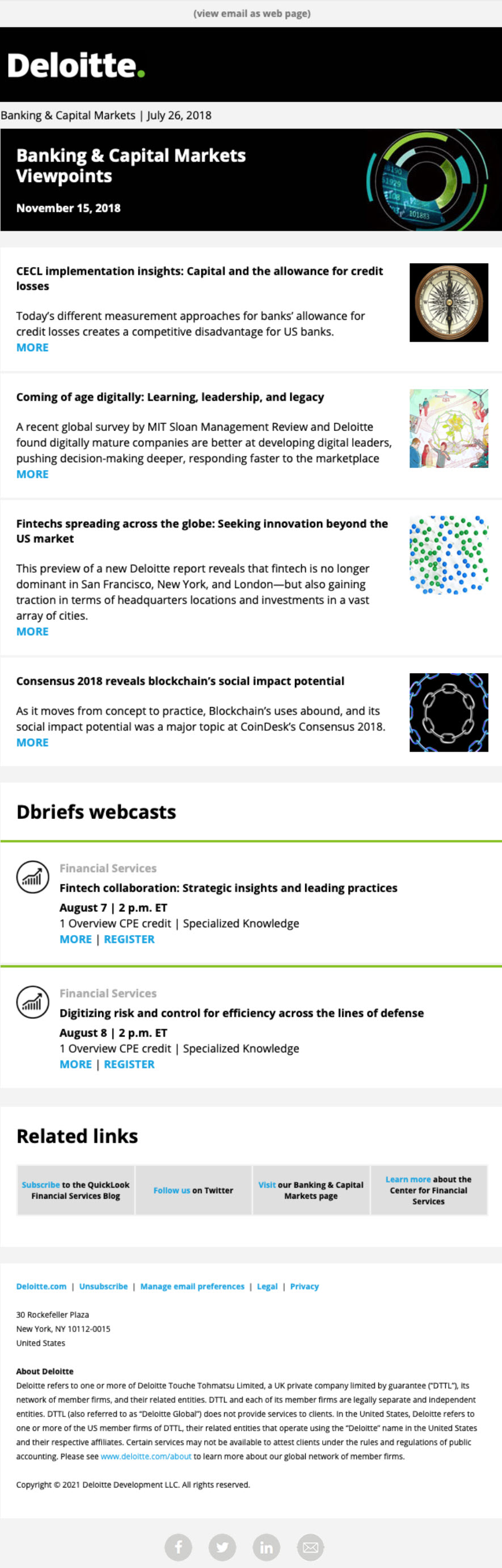 The Articles have been divided into two column layout with left side title and teaser, other side the image of the landing page but with smaller size of the images. The Dbriefs webcasts section has been changed as per the layout used in the actual Dbriefs invite to make it look similar and familiar