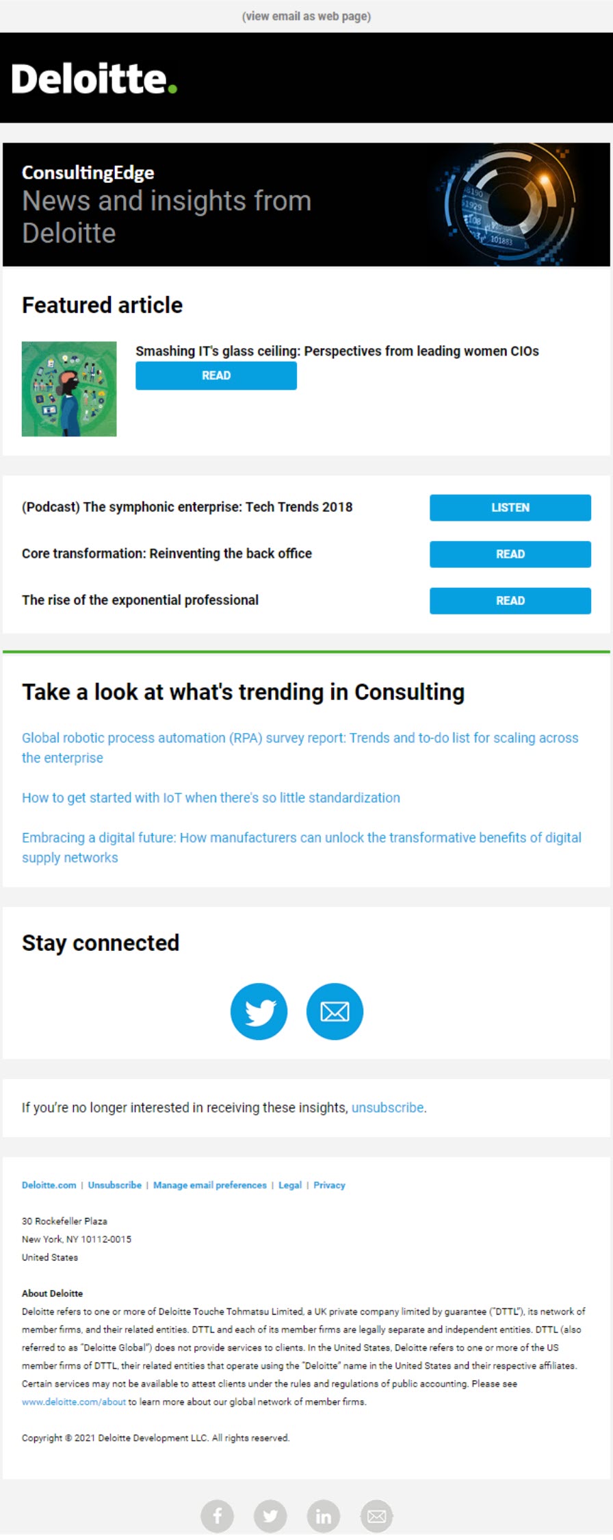 | Business Group | Unique Open Rate | Unique Clickthrough Rate | Number of Times It Is Used |