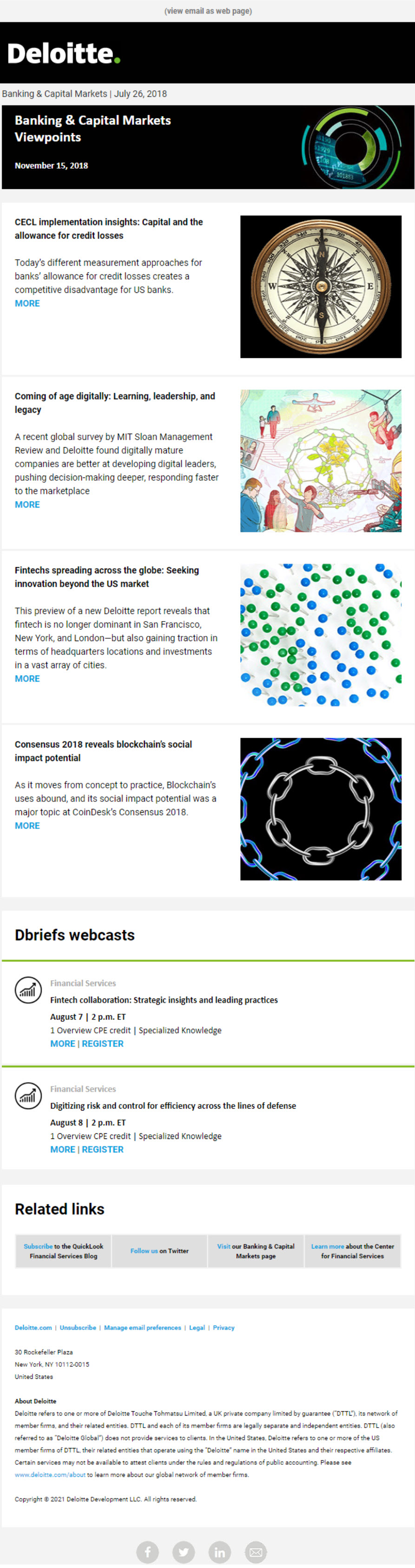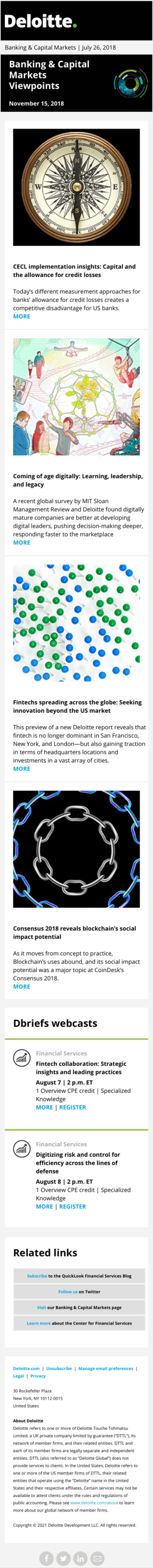 Used text over banner image for Banner and Title. The Articles have been divided into two column layout with left side title and teaser, other side the image of the landing page. The Dbriefs webcasts section has been changed as per the layout used in the actual Dbriefs invite to make it look similar and familiar.
